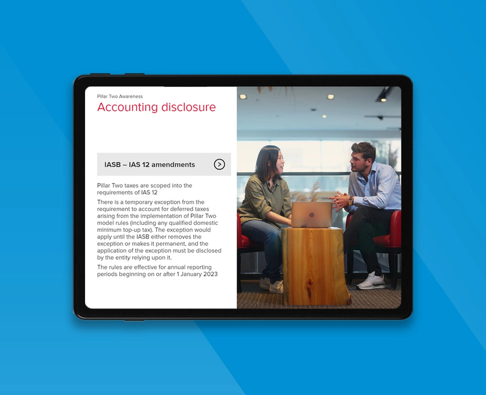 With flexible modules, you can tailor your training to fit your team and business. Whether you want to learn how to apply safe harbours, how to identify and avoid potential pitfalls, or how to assess and manage deferred tax for Pillar Two purposes, this training can give you the confidence to apply Pillar Two legislation.